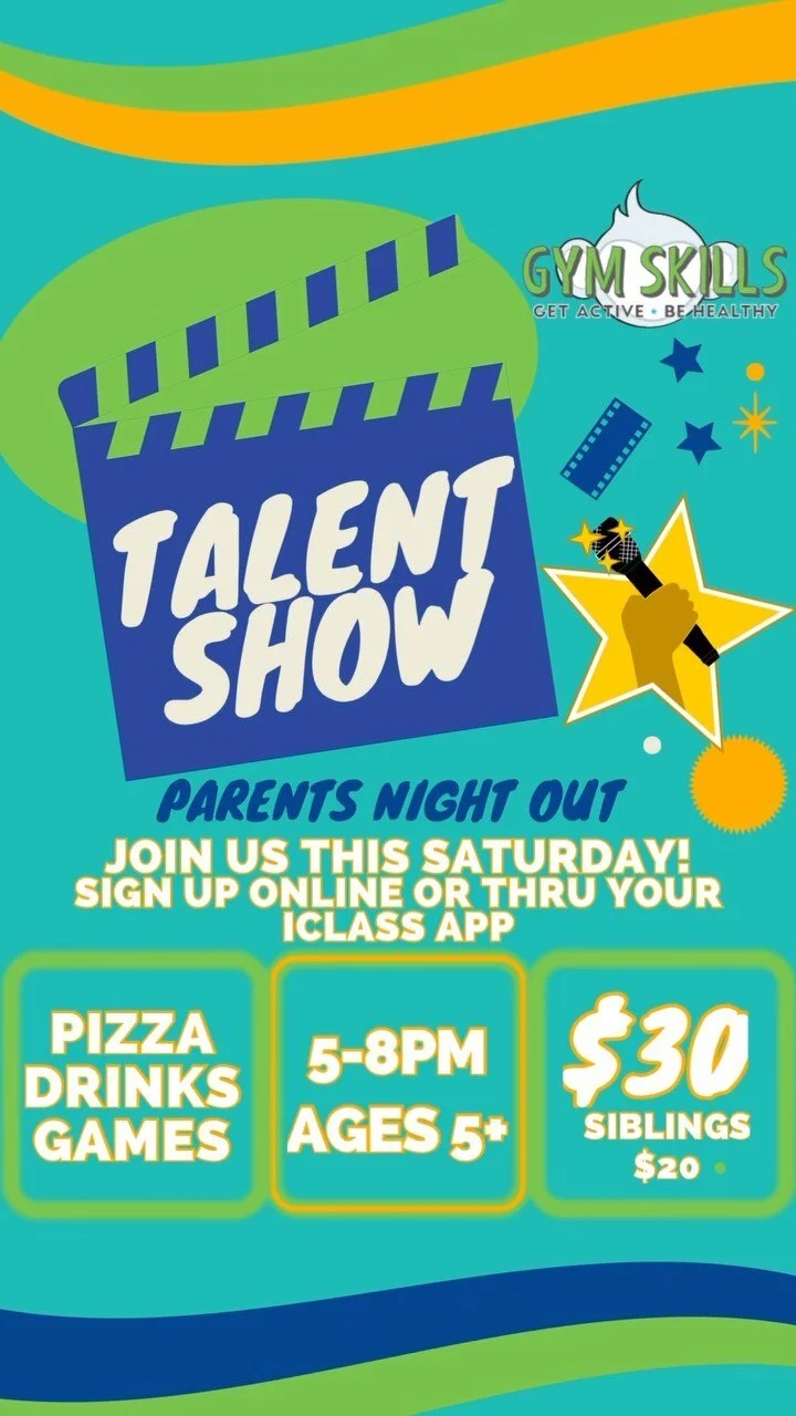 EVERY SECOND SATURDAY NIGHT OF THE MONTH PARENTS CAN DROP OFF THEIR CHILDREN AT GYM SKILLS FOR A FUN-FILLED EVENING OF GYMNASTICS FUN, GAMES, GROUP ACTIVITIES, MUSIC, CRAFTS, AND MORE.